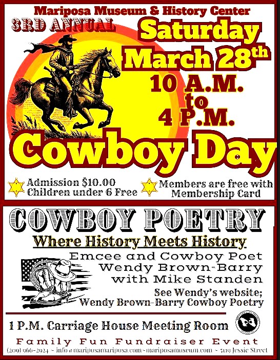 So, take a step back in time, and revisit a piece of the old west in Mariposa. It’s an honor to preserve a piece of our local history through Cowboy Poetry.